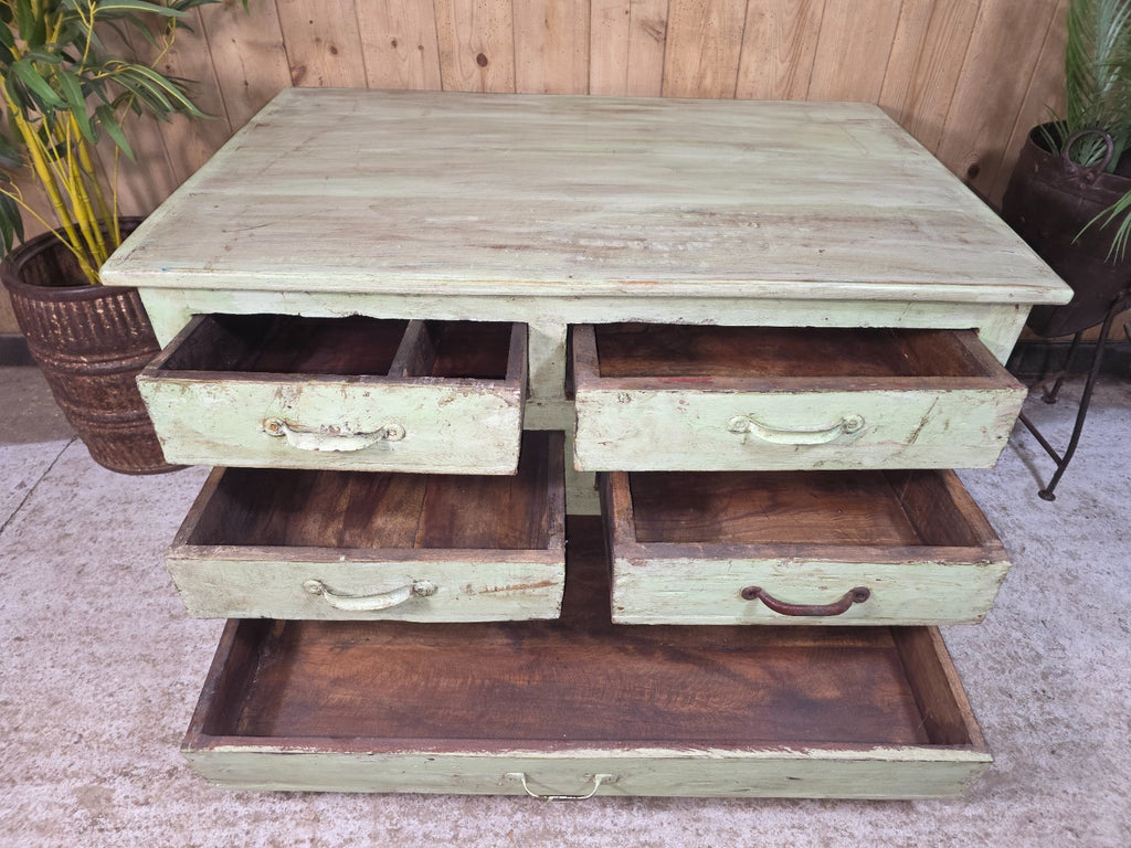 Antique Indian Solid Wooden Merchants Engineers Workman's Drawers Coffee Table