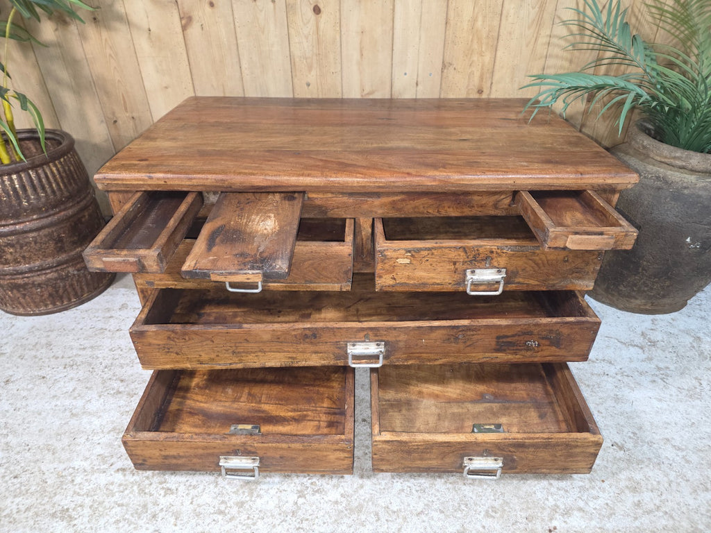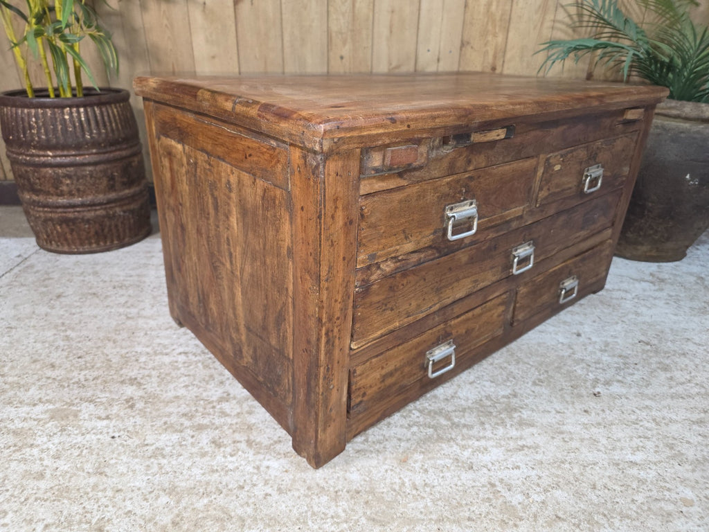 Antique Indian Solid Wooden Merchants Engineers Workman's Drawers Coffee Table