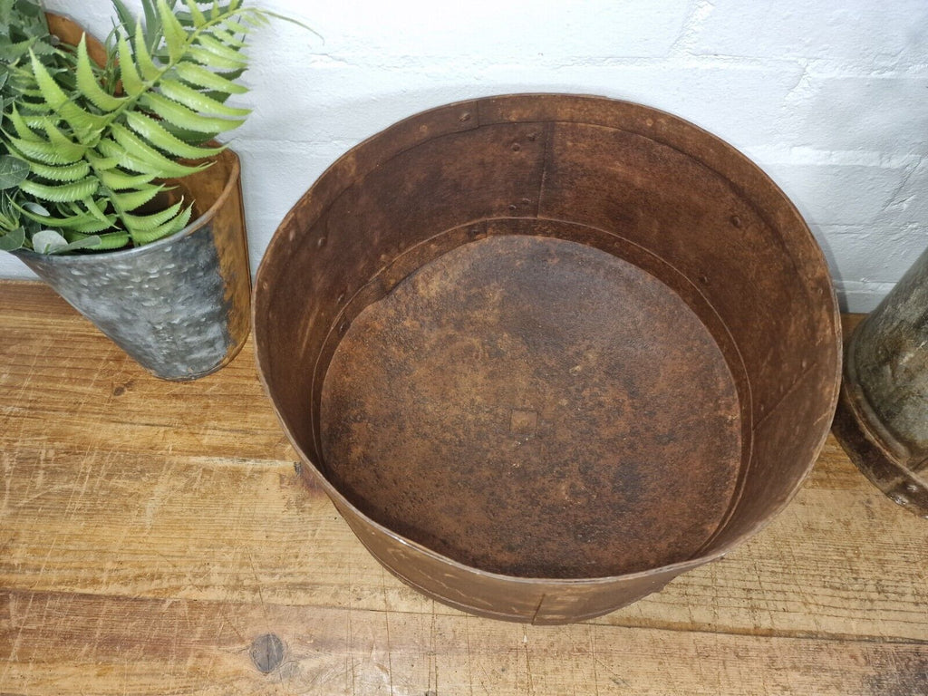 Antique Rustic Hand Forged Riveted Iron Metal Bowl Dish Herb Garden Planter
