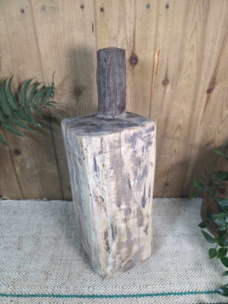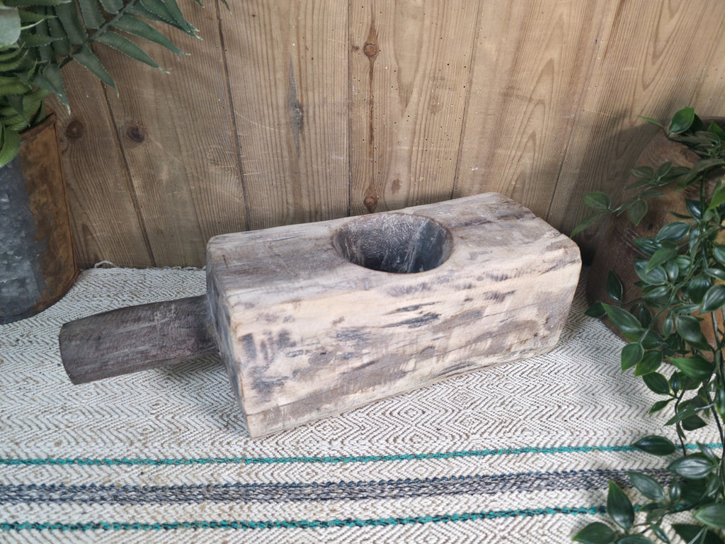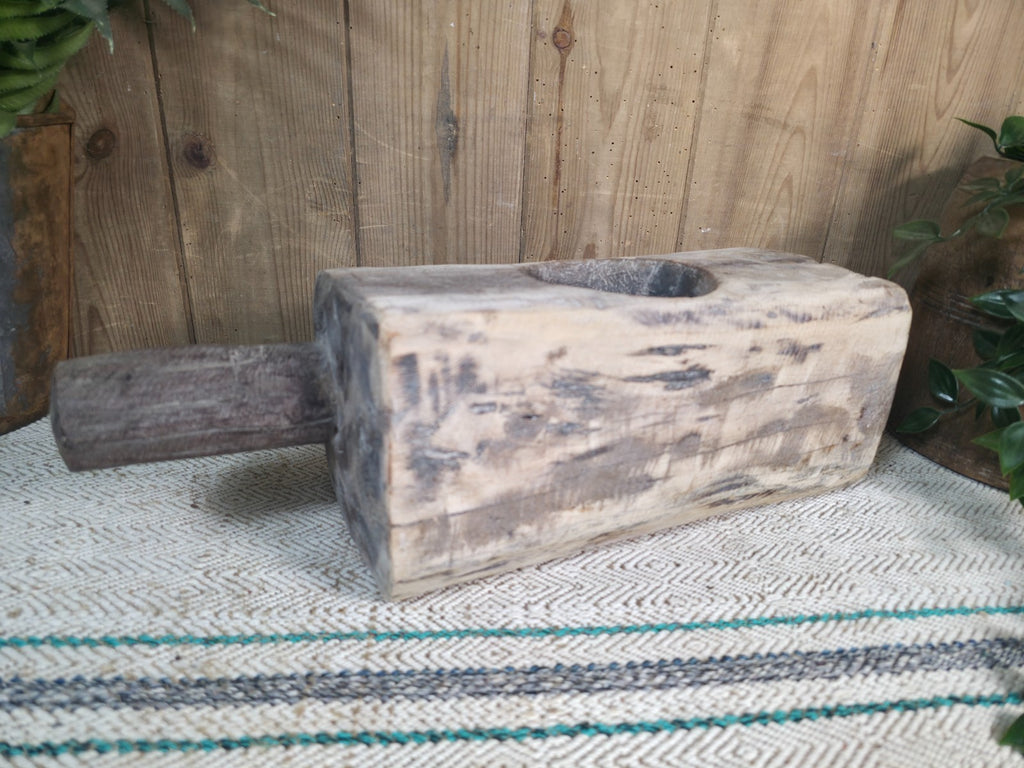 This old vintage rustic wabi sabi hand carved wooden bowl is a unique and charming addition to any home décor. Originally used for grinding herbs and spices the intricate design and craftsmanship of the piece make it a standout piece in any room. The wabi sabi aesthetic, with its natural imperfections and rustic finish, adds a sense of authenticity and character to your space. Perfect as a decorative accent, this piece is sure to be a conversation starter in your home.