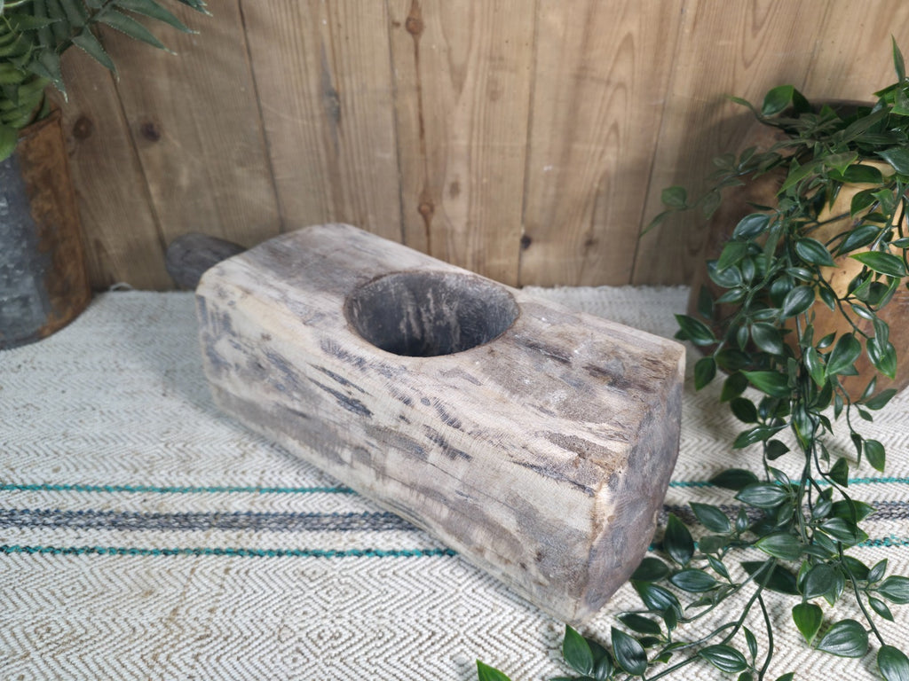 Large Old Vintage Rustic Wabi Sabi Hand Carved Wooden Mortar Bowl Dish