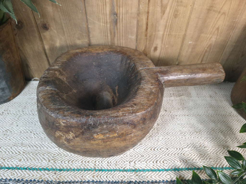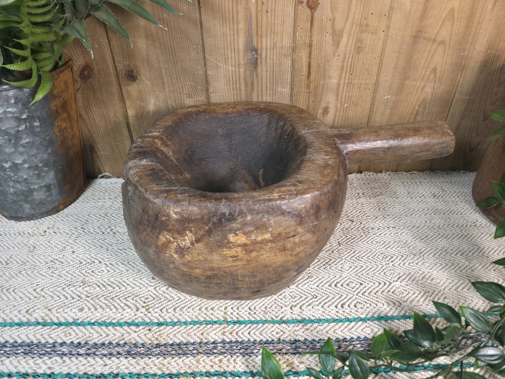 Large Old Vintage Rustic Wabi Sabi Hand Carved Wooden Mortar Bowl Dish