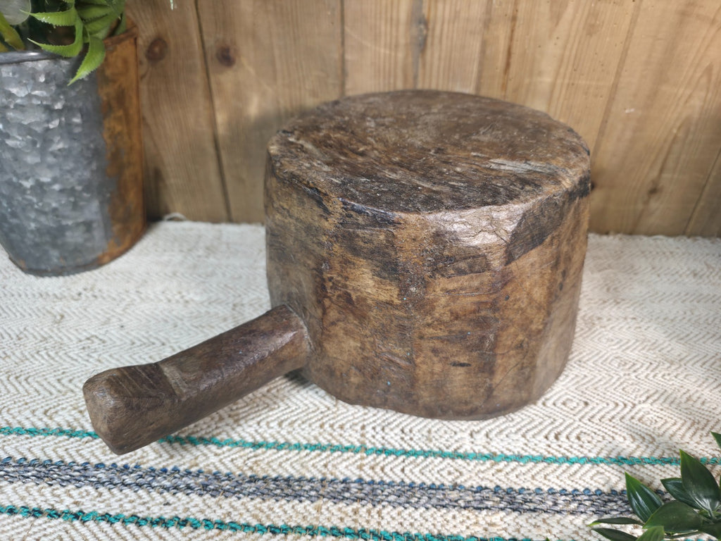 Large Old Vintage Rustic Wabi Sabi Hand Carved Wooden Mortar Bowl Dish