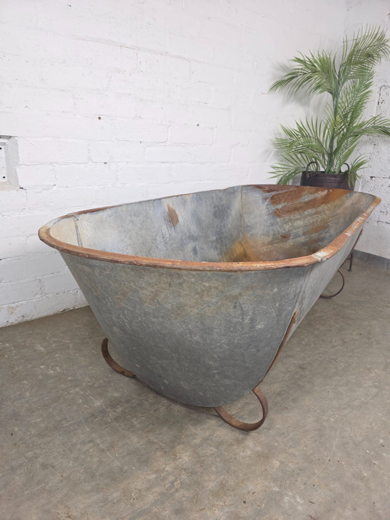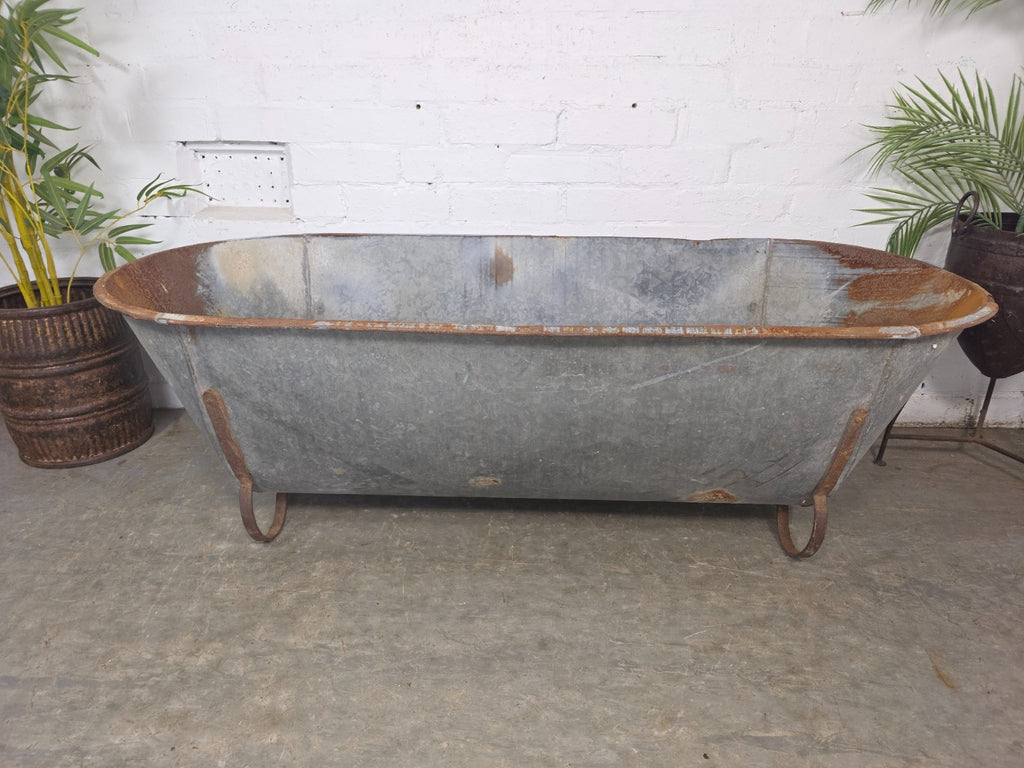 Large Vintage Hungarian Galvanised Tin Bath Tub Trough Garden Pond Herb Planter
