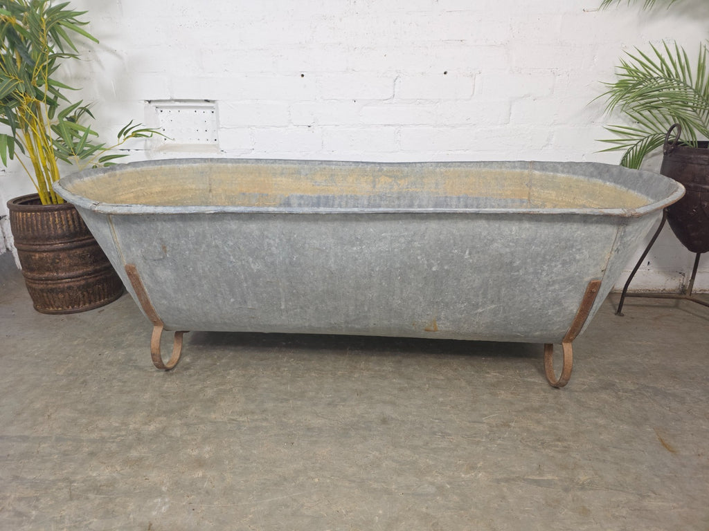 Large Vintage Hungarian Galvanised Tin Bath Tub Trough Garden Pond Herb Planter