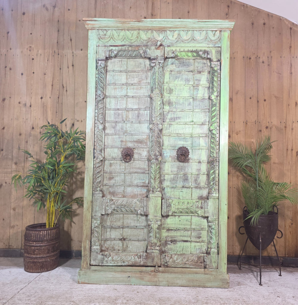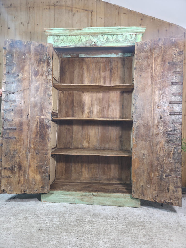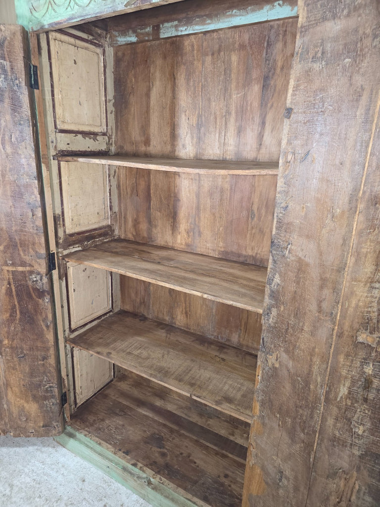 Large Vintage Indian Solid Wooden Armoire Wardrobe Kitchen Linen Cupboard