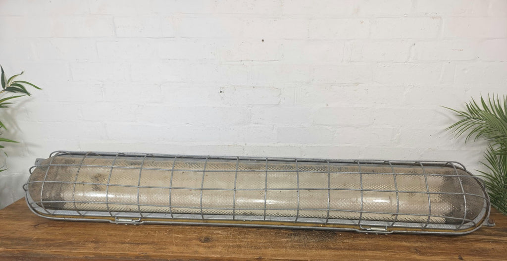 Large Vintage Industrial Caged Factory Explosion Bulk Head Ceiling Strip Light