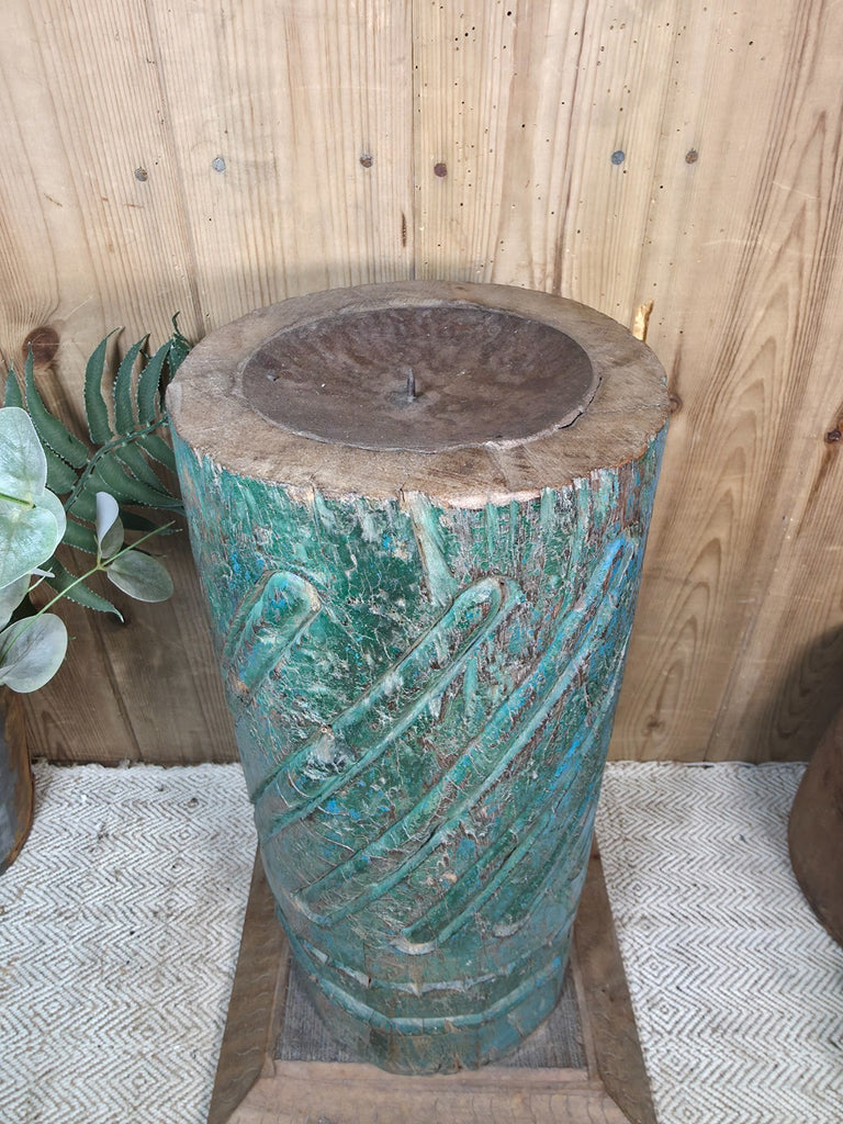Large Vintage Reclaimed Carved Indian Solid Wooden Pillar Column Candle Holder
