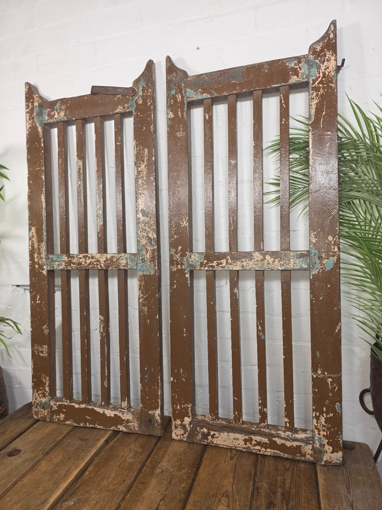 Old Pair Vintage Reclaimed Indian Wooden Iron Saloon Doors Shutters Garden Gates