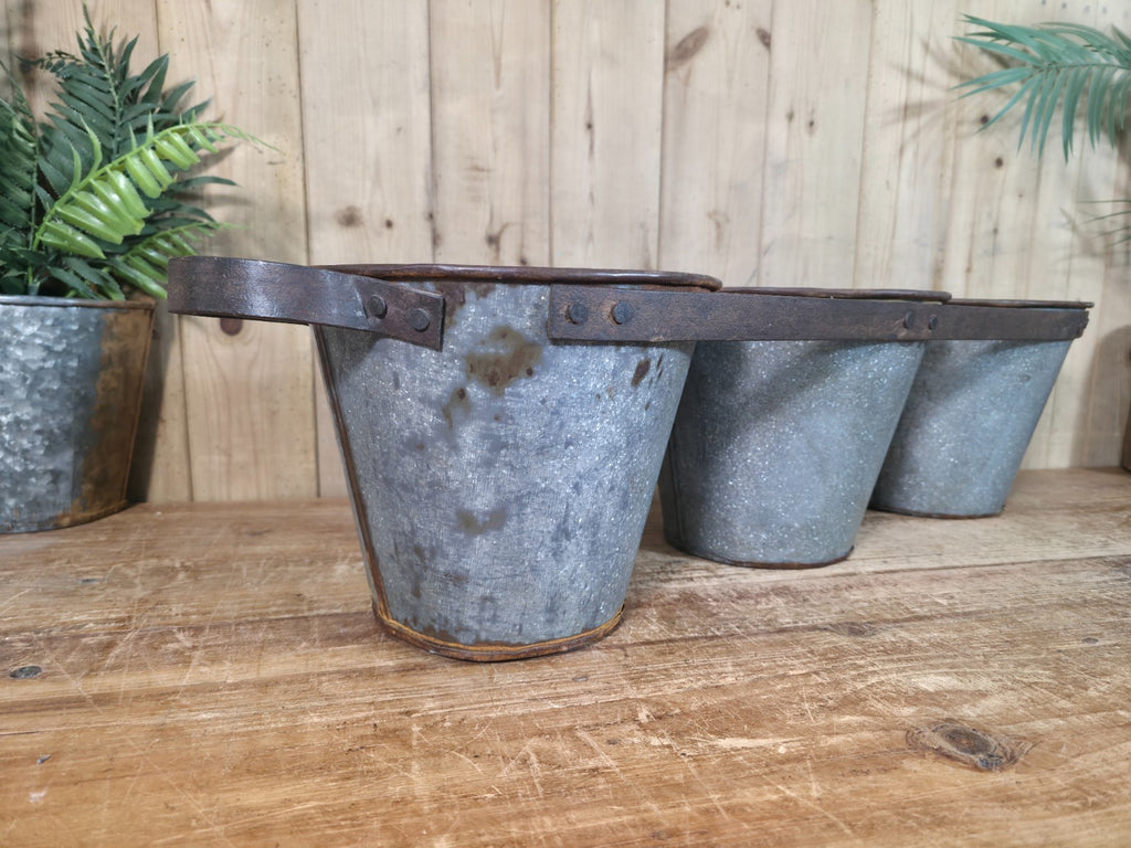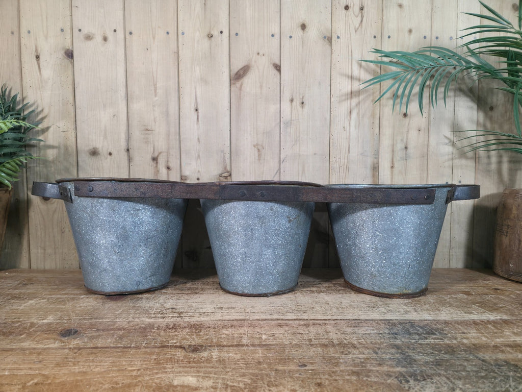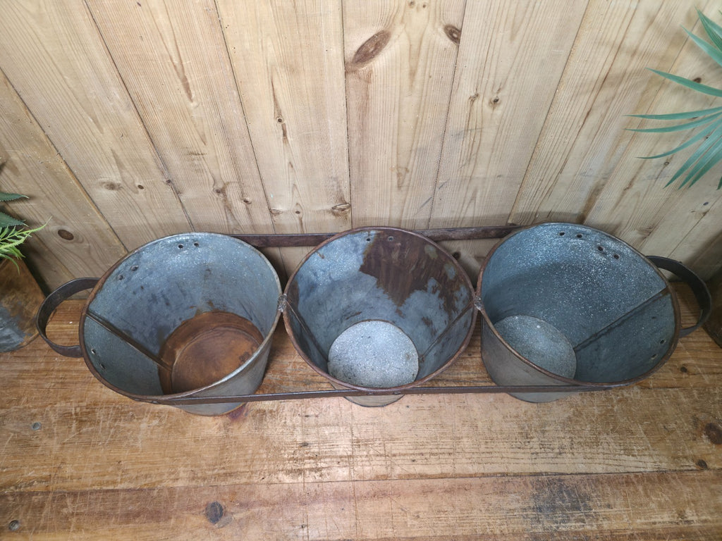 Rustic Reclaimed Hand Made Galvanised Metal Triple Pot Garden Planter
