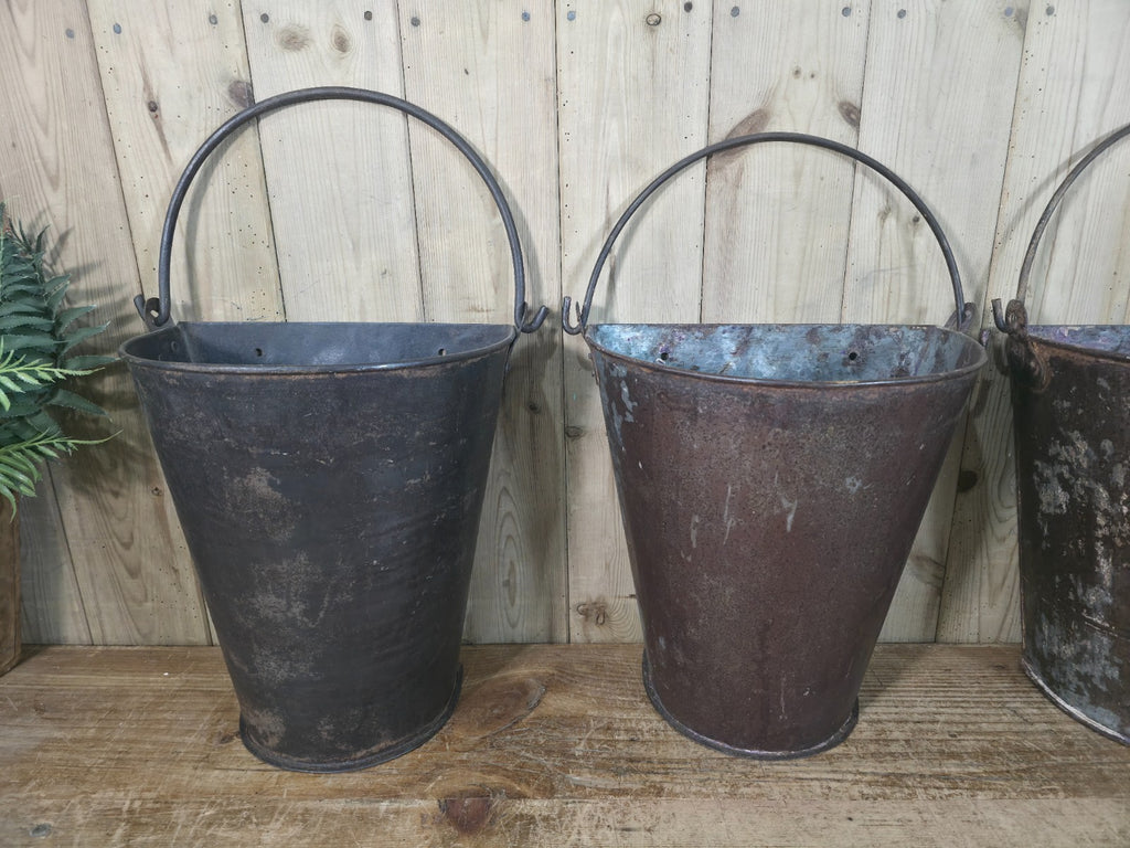 Rustic Reclaimed Metal Wall Hanging Half Bucket Garden Herb Planter Pot