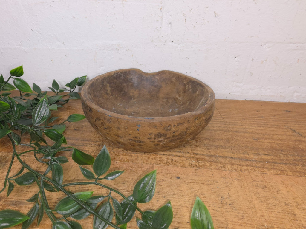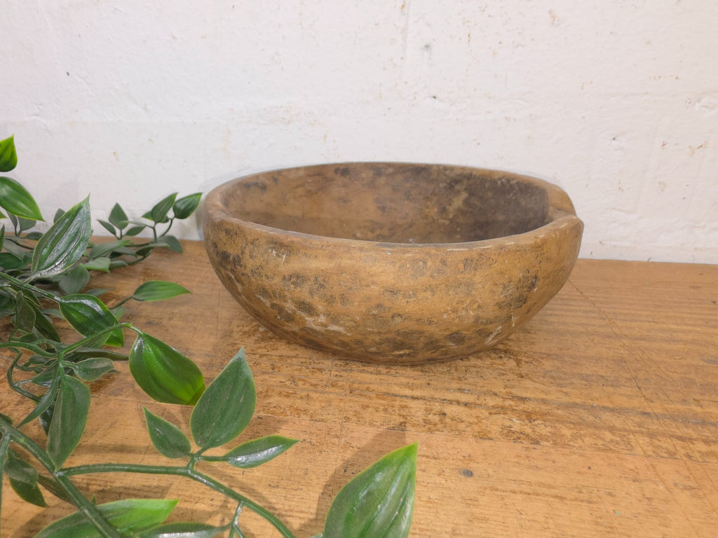 Rustic Wabi Sabi Antique Hand Carved Solid Stone Bowl Dish