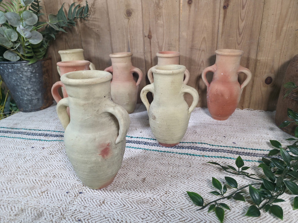 Small Rustic Wabi Sabi Hand Made Mediterranean Terracotta Roman Urn Pot Vase