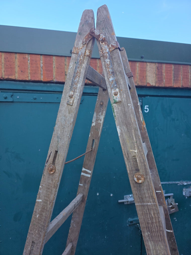 These Vintage French Pine Wooden Trestle Ladders are a charming and unique piece of furniture, perfect for displaying items in a workshop or home setting. The wooden construction adds a touch of rustic elegance, while the ladder design offers a functional and stylish storage solution. Ideal for weddings or special occasions, this ladder can showcase personal items or decorative items in a creative way. Its vintage appeal adds character and charm to any space, making it a versatile and eye-catching piece for any DIY enthusiast.