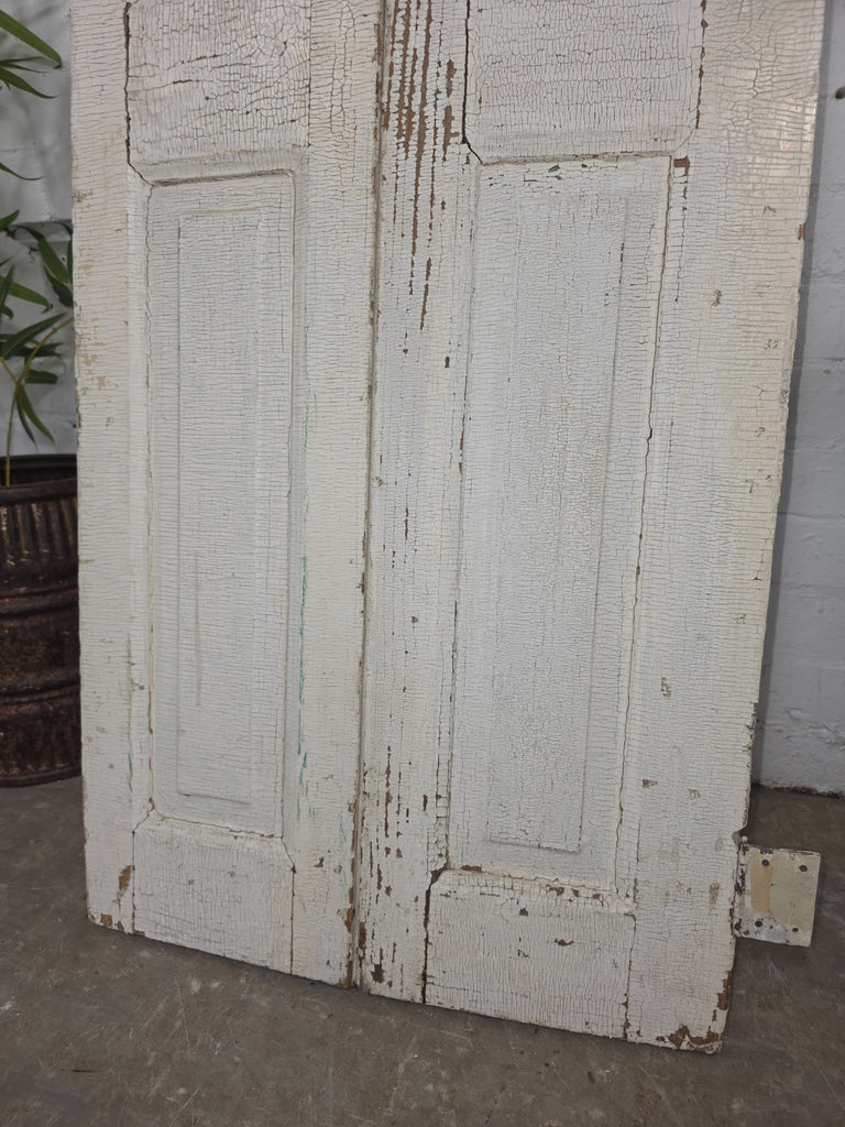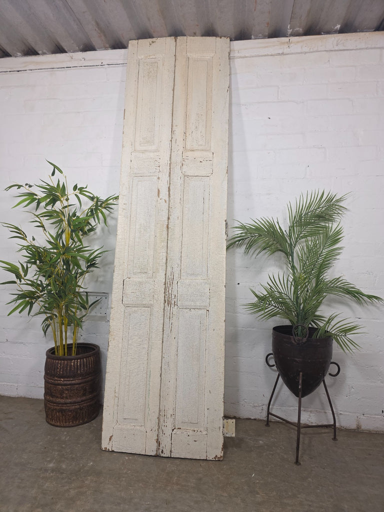 Stunning old original French wooden bi folding window/door shutters with panelled detailing. Ideal for use as room dividers, interior design projects, wardrobe doors etc. Great look and patina