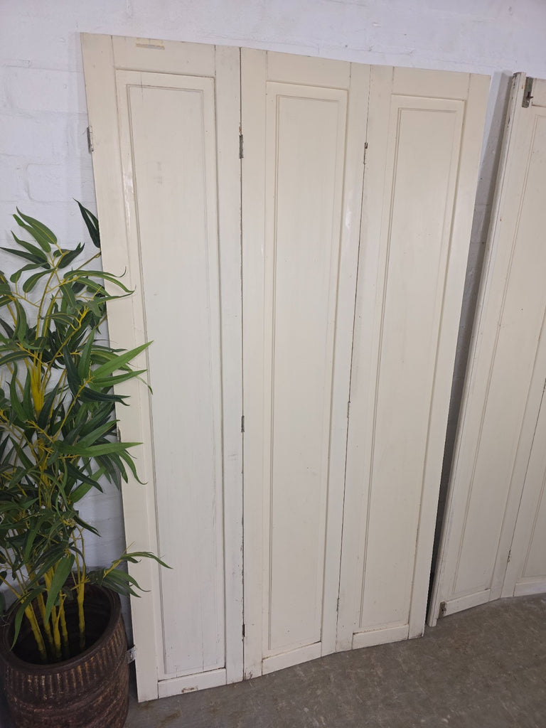 Stunning set of old original French wooden Tri folding window/door shutters with panelled detailing. Ideal for use as room dividers, interior design projects, wardrobe doors etc. Great look and patina
