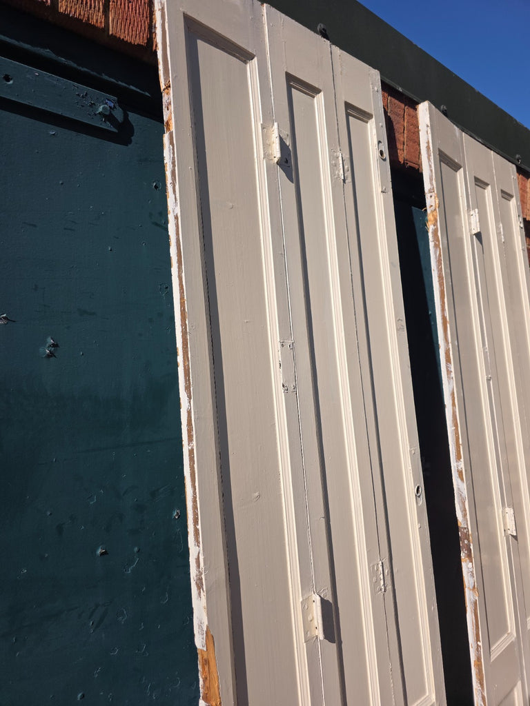 Vintage French Wooden Pine Bi Folding Window Door Shutters Screen Room Divider