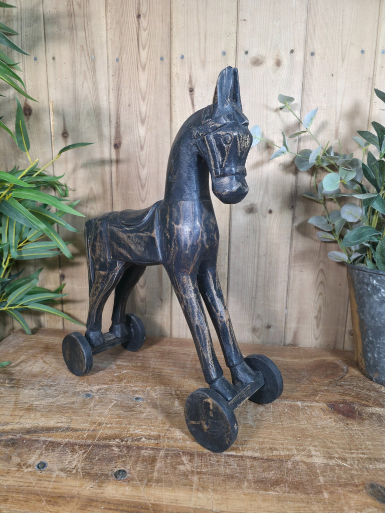 Vintage Hand Carved Solid Wooden Horse Ornament Sculpture
