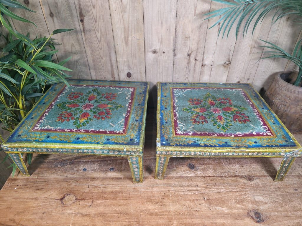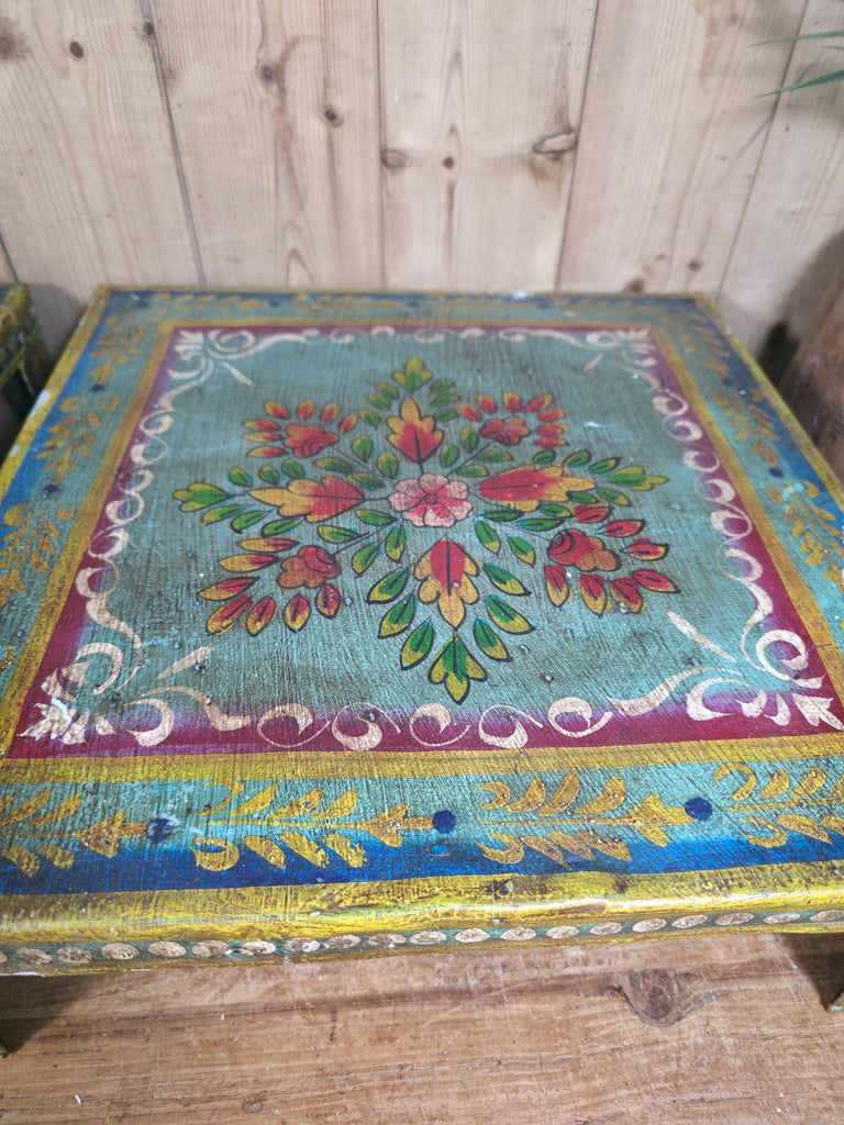 These vintage Indian hand-painted Bajot tables are a unique and beautiful piece of furniture for any home. The intricate hand-painted design adds a touch of traditional Indian craftsmanship to any room, while the metal construction gives it a sturdy and durable build. Perfect for serving coffee or showcasing your favourite plants, this versatile piece is both functional and stylish, making it a great addition to any living space.
