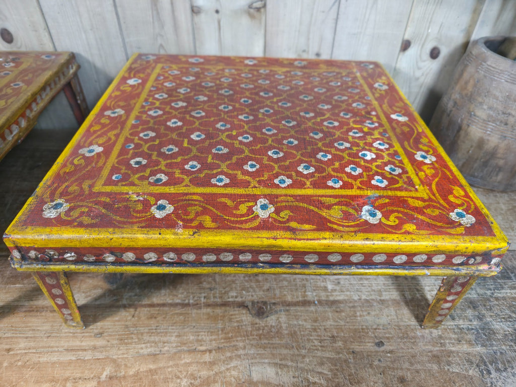 Vintage Indian Hand Painted Low Metal Bajot Coffee Side Table Plant Stand