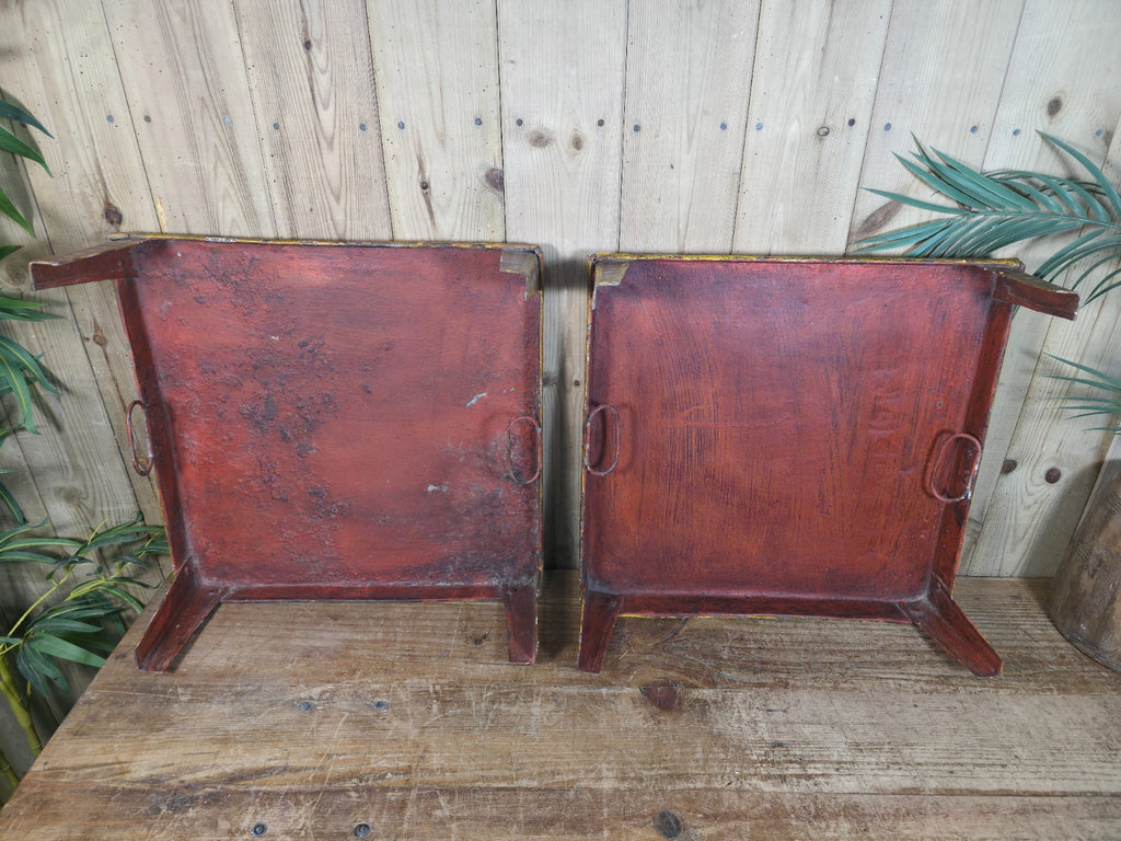 These vintage Indian hand-painted Bajot tables are a unique and beautiful piece of furniture for any home. The intricate hand-painted design adds a touch of traditional Indian craftsmanship to any room, while the metal construction gives it a sturdy and durable build. Perfect for serving coffee or showcasing your favourite plants, this versatile piece is both functional and stylish, making it a great addition to any living space.