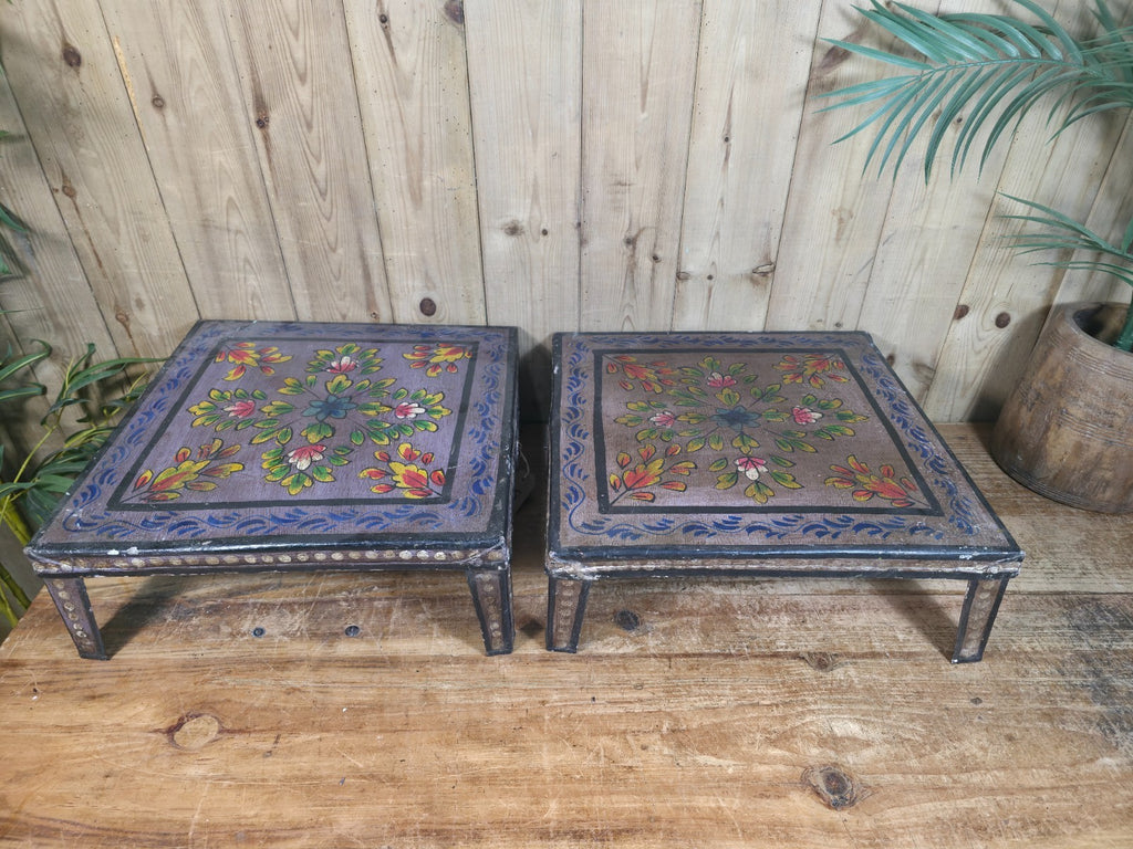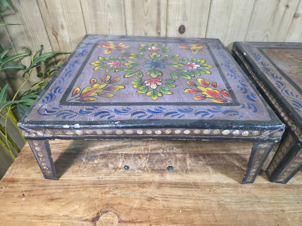 These vintage Indian hand-painted Bajot tables are a unique and beautiful piece of furniture for any home. The intricate hand-painted design adds a touch of traditional Indian craftsmanship to any room, while the metal construction gives it a sturdy and durable build. Perfect for serving coffee or showcasing your favourite plants, this versatile piece is both functional and stylish, making it a great addition to any living space.