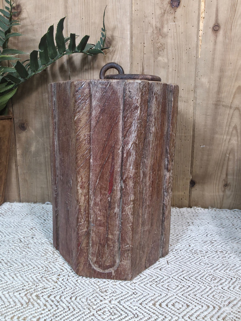 Vintage Reclaimed Antique Rustic Wabi Sabi Hand Carved Wooden Column Door Stop