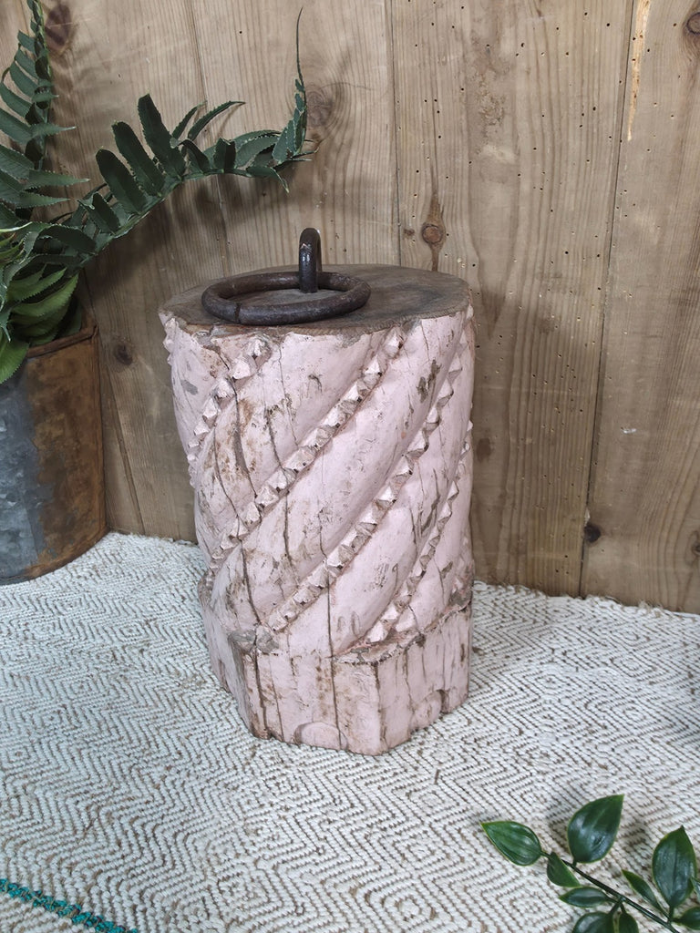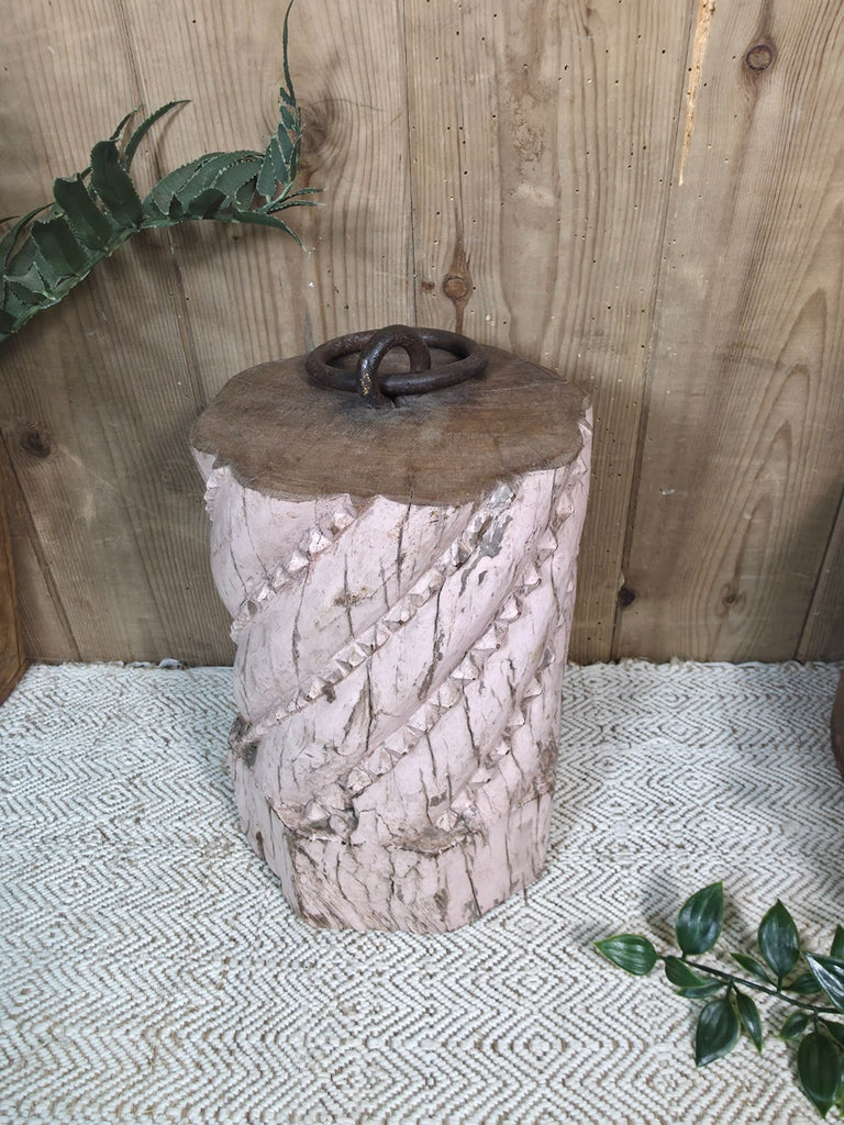 Vintage Reclaimed Antique Rustic Wabi Sabi Hand Carved Wooden Column Door Stop