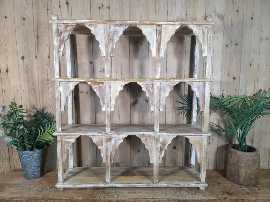 Add a touch of vintage charm to your home with these beautiful handmade Indian wall shelves. With four sturdy solid wood shelves, this boho-style display unit is perfect for showcasing your favourite trinkets and treasures. The arched temple design is both unique and eye-catching, while the reclaimed wood adds texture to any room. This wall shelf is the perfect addition to any home. Crafted from reclaimed solid wood, this piece brings a touch of authenticity and character to your space. Made in India, this shelf is a true reflection of the country's rich cultural heritage.