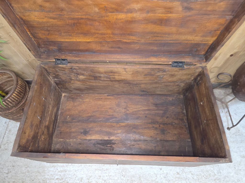 Vintage Reclaimed Rustic Indian Solid Wooden Blanket Box Chest Trunk Ottoman