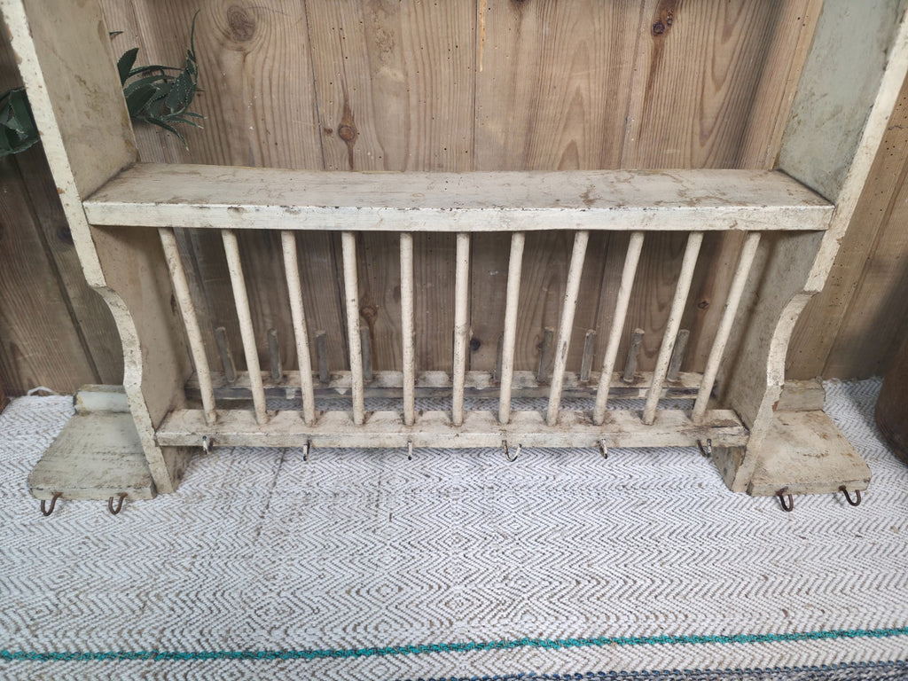 This vintage rustic Indian kitchen wall rack is a charming addition to any kitchen. Originally used for cups, saucers and spices this rack is ideal to keep your kitchen organized while adding a touch of traditional Indian flair. Perfect for storing and displaying your favourite spices, this piece also serves as a convenient wall-mounted shelf for cups and saucers. The rustic finish gives it a unique and authentic look that will complement any home decor.