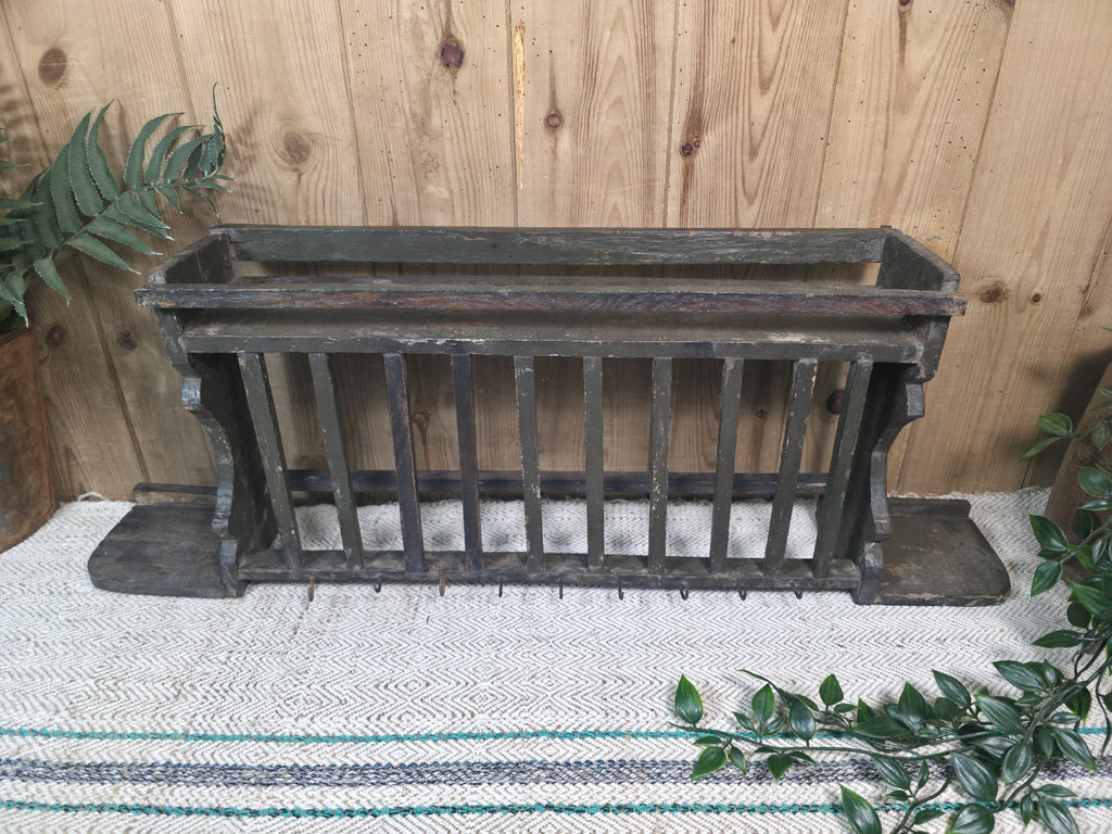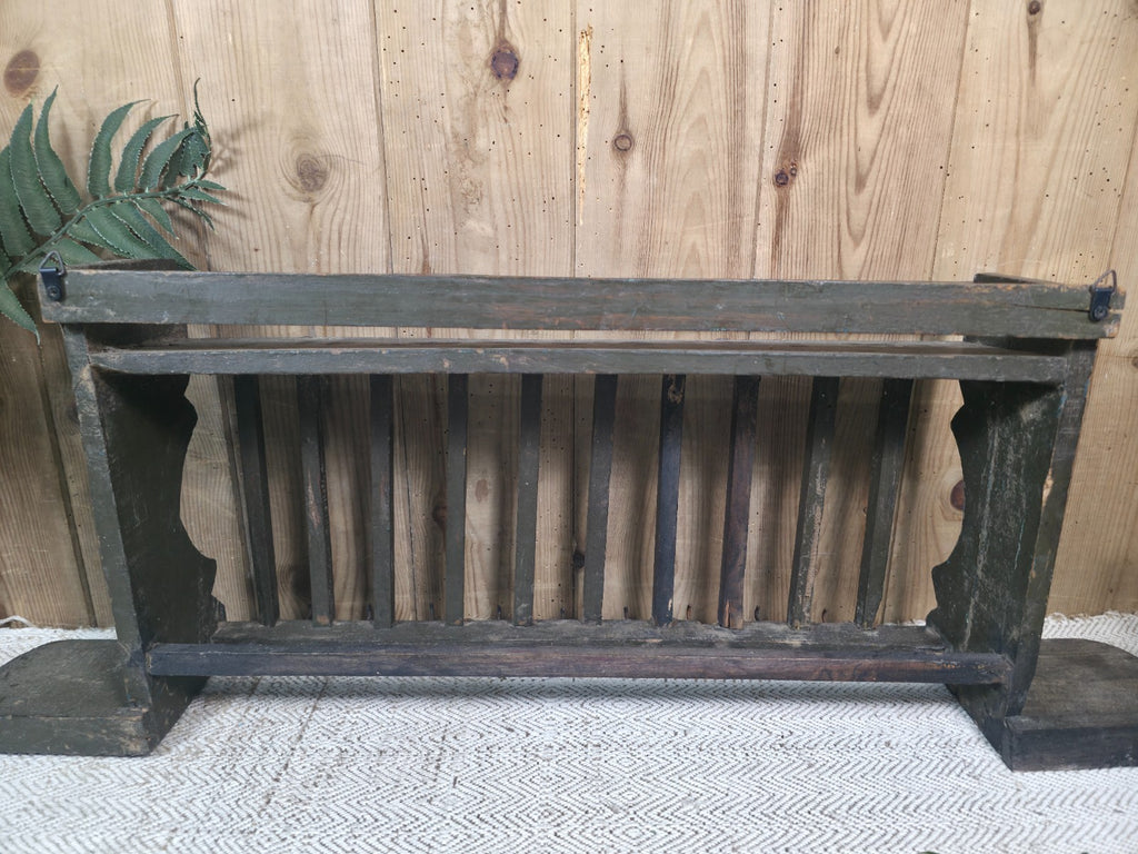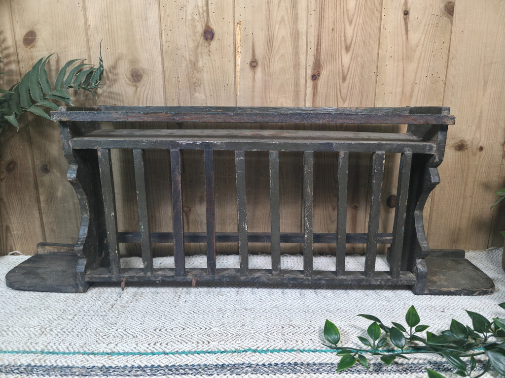 This vintage rustic Indian kitchen wall rack is a charming addition to any kitchen. Originally used for cups, saucers and spices this rack is ideal to keep your kitchen organized while adding a touch of traditional Indian flair. Perfect for storing and displaying your favourite spices, this piece also serves as a convenient wall-mounted shelf for cups and saucers. The rustic finish gives it a unique and authentic look that will complement any home decor.