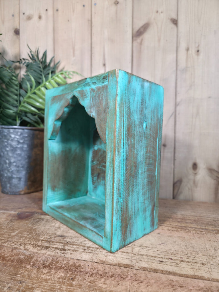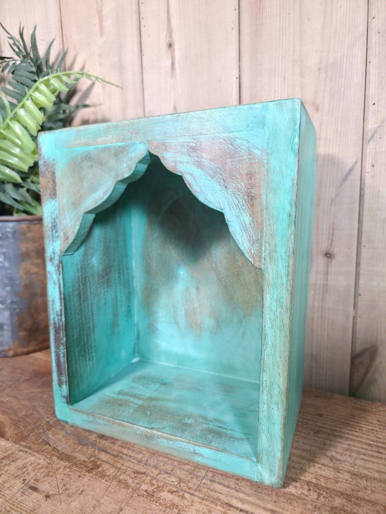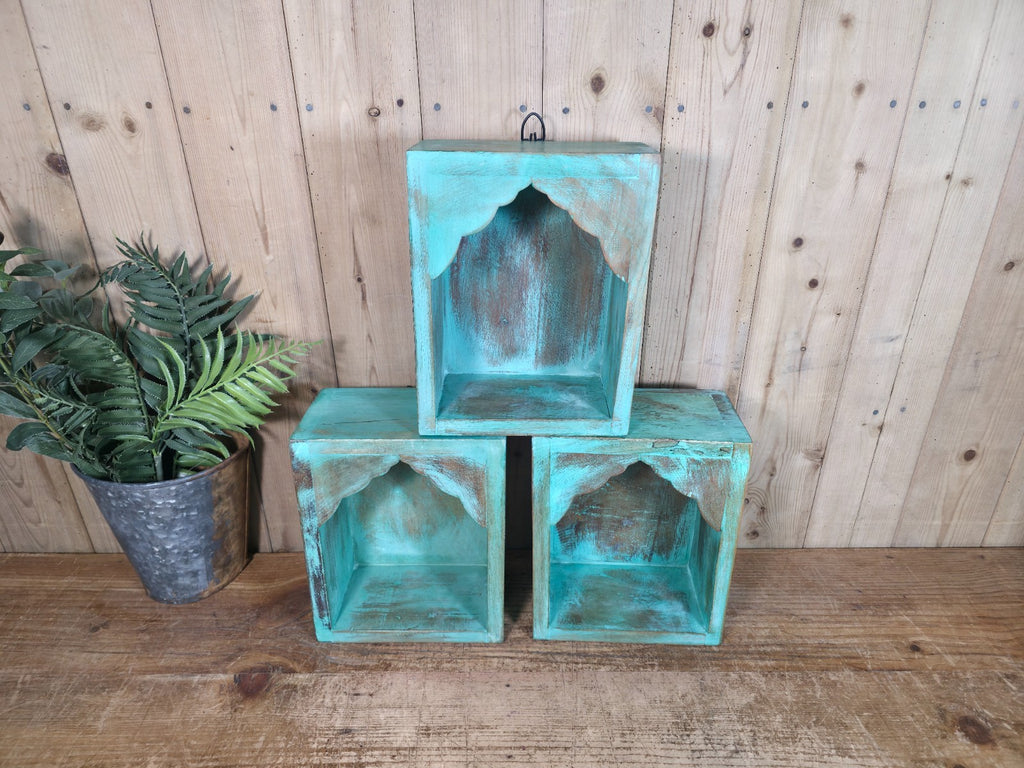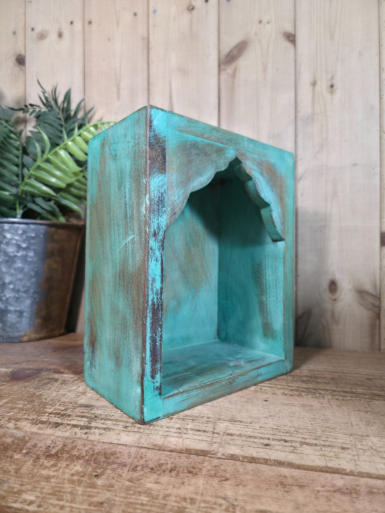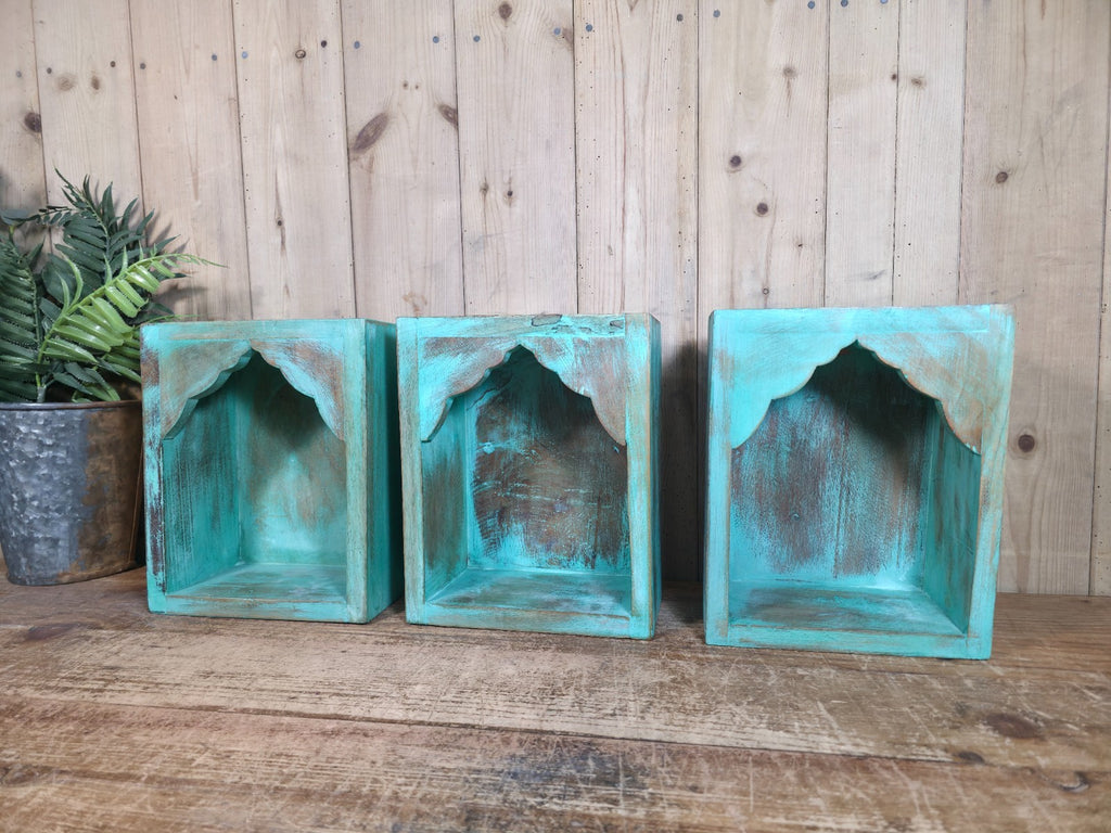 Vintage Rustic Reclaimed Indian Wooden Arched Temple Shelf Wall Display Shelves