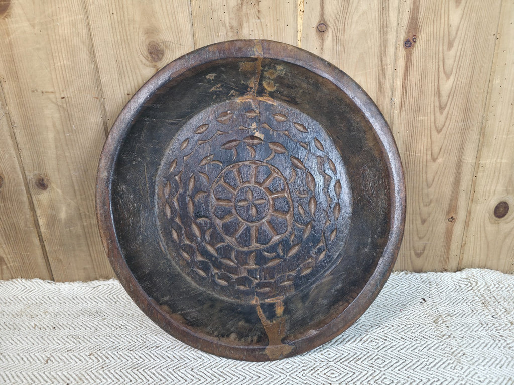 Vintage Rustic Wabi Sabi Indian Hand Carved Wooden Dough Bowl