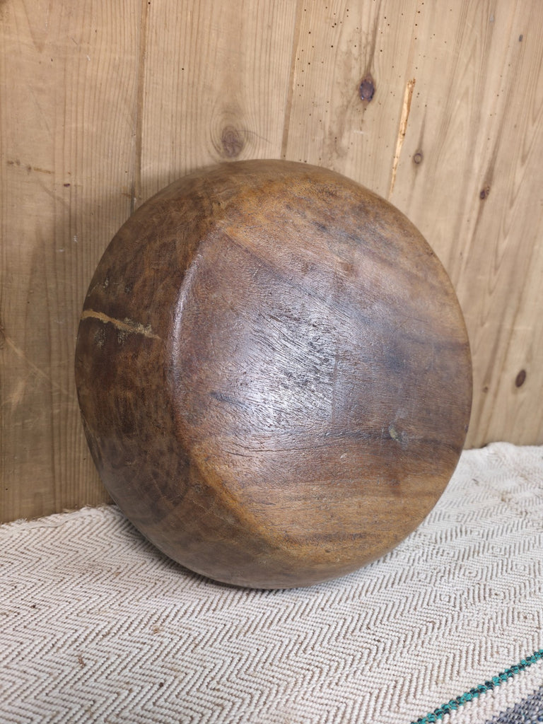 Vintage Rustic Wabi Sabi Indian Hand Carved Wooden Dough Bowl