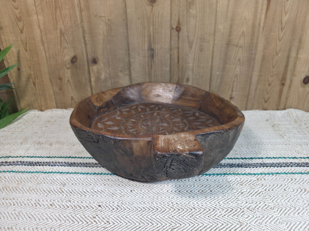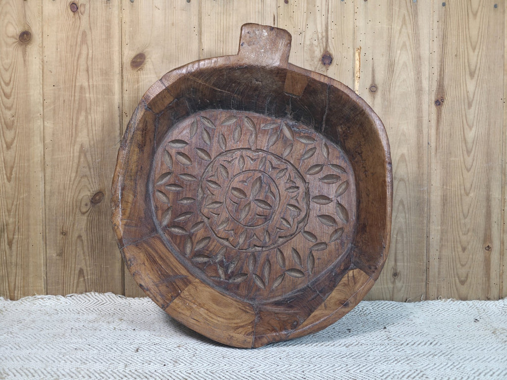 Vintage Rustic Wabi Sabi Indian Hand Carved Wooden Dough Bowl