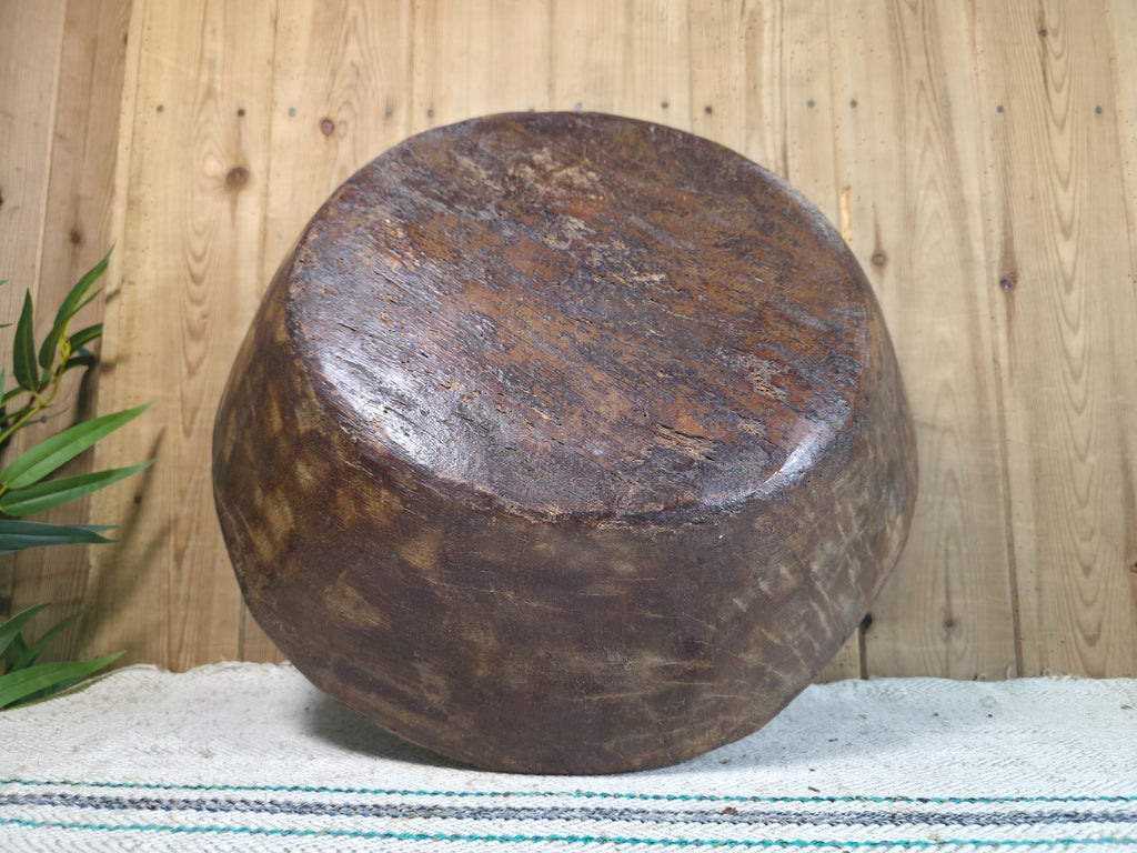 Vintage Rustic Wabi Sabi Indian Hand Carved Wooden Dough Bowl